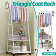 Maximise space and keep garments neatly stored with this floor-standing clothes rack.Featuring a triangular base with V-belt wheel design for improved balance, it offers generous hanging space and dual lower shelves for shoes or storage bins.Made with thick stainless steel tubing and durable PP connectors, this rack is built for long-term use.Ideal for bedrooms, dorms, or laundry rooms, it’s fitted with lockable swivel wheels for easy repositioning and stability.