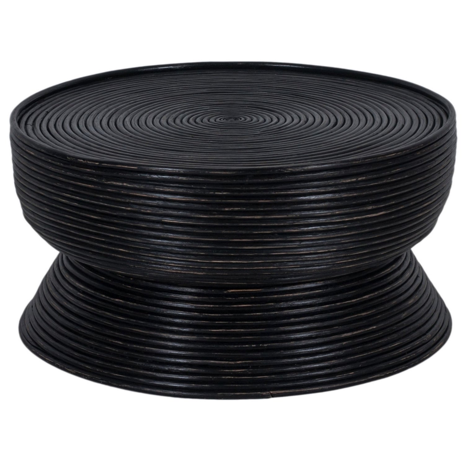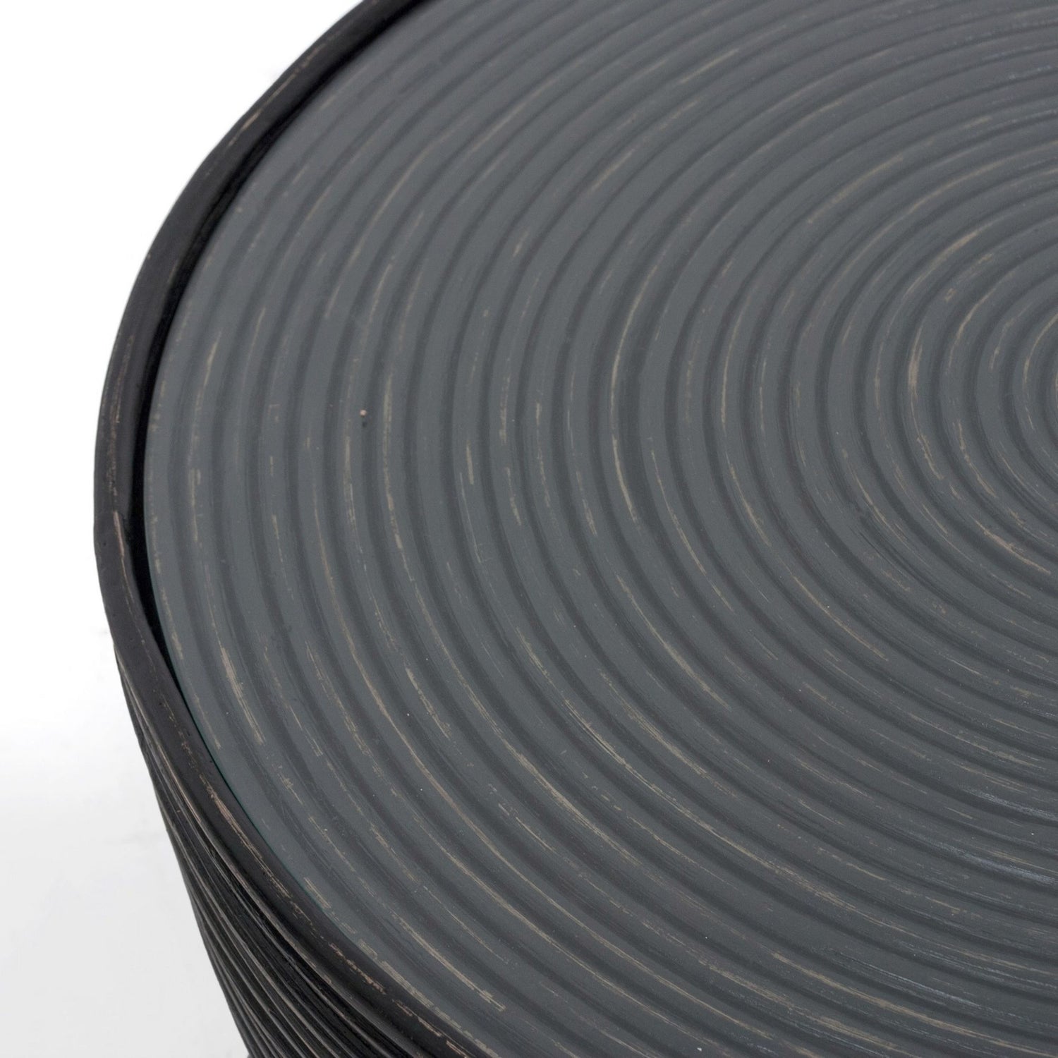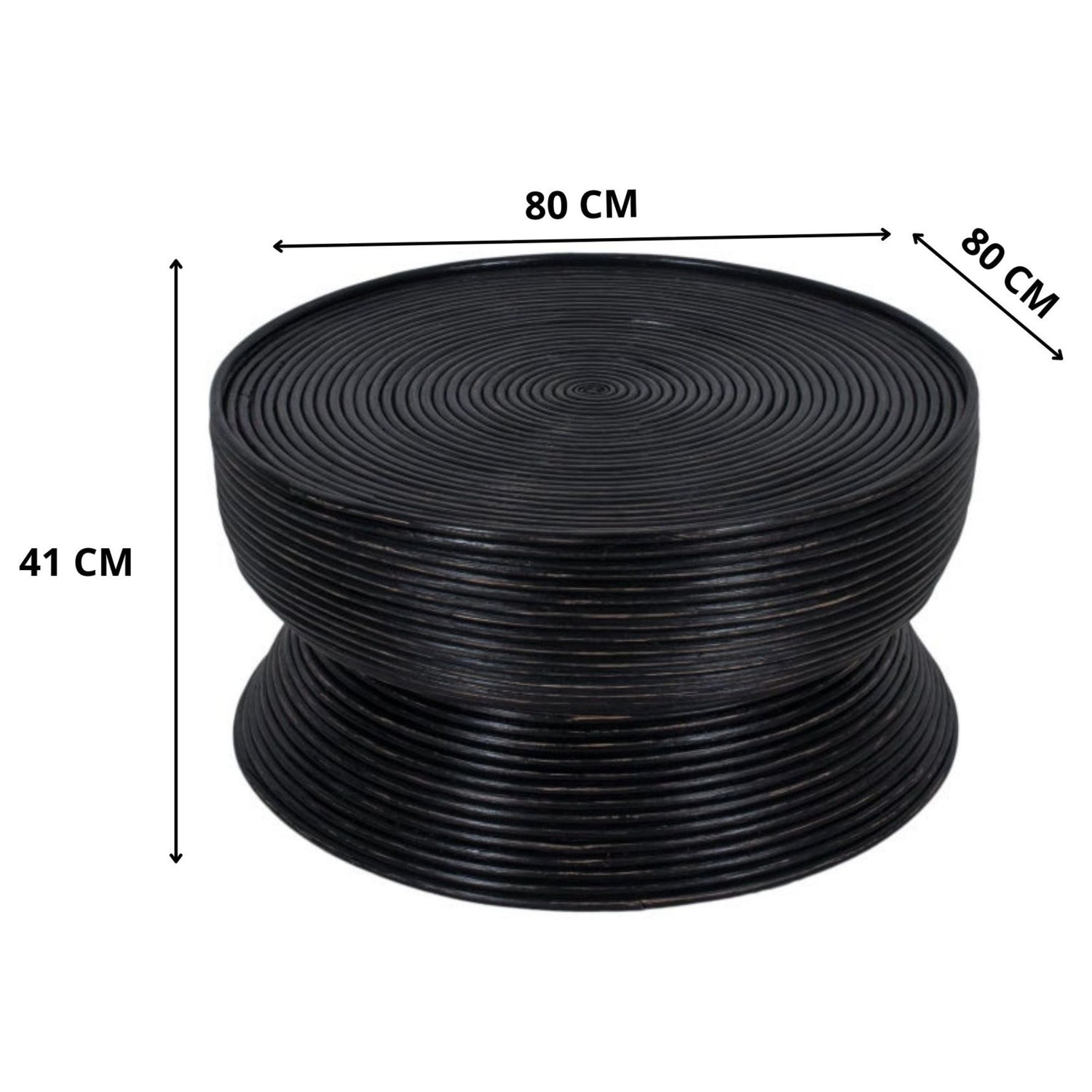 This gorgeous coffee table adds a fresh beauty to a living room. With its distinct design, round shape, black distressed colour, and glass top, the traditional style coffee table will beautify your living area. The table is designed in an exotic pattern using sustainably harvested rattan material and a metal frame. It is crafted using a unique weaving and finishing technique. Each piece is handmade from natural cane using age old traditional construction methods and so no two products are the same. Each will come with their own unique variations and look. The material ensures the table's strength, long durability, and beautiful appearance. The stunning indoor furniture will become the perfect companion for any kind of lounge or sofa, while also becoming a stopover for tea, coffee, magazines, and devices. The fully assembled coffee table comes with a one-year warranty.