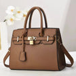 Elegant PU Leather Handbag with Lock Decoration - Structured Tote Bag