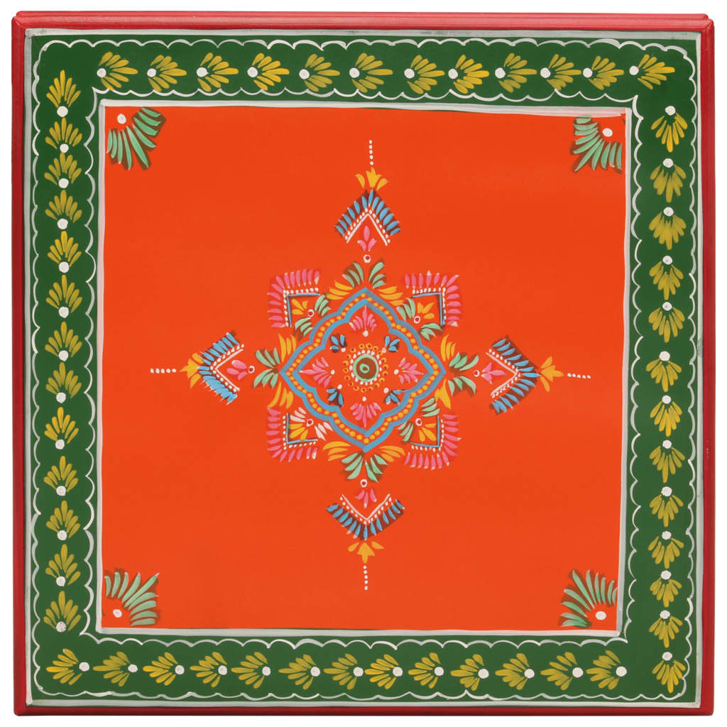 This wooden coffee table with rich hand-painted decorations will make an eye-catching addition to your living room. Solid mango wood: Solid mango wood is a strong, tropical hardwood that makes sturdy furniture. Its beautiful wood grains make every piece of furniture slightly different from the next. Made of solid mango wood, this sofa table is sturdy and durable.Hand-painted design: The side table features extensive hand-painted decorative details, which add warmth and elegance to your room.Sturdy tabletop: The sturdy tabletop is perfect for placing your drinks, food, and other decorative items.