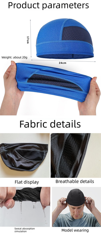 Don't let sweat ruin your ride or workout. This Cooling Mesh Skull Cap is engineered to tackle the challenges of hot weather and heavy exertion. The key to its performance lies in the specialized fabric structure—a blend of soft, moisture-absorbing material and ventilation zones that work together to regulate your body temperature. By wearing this liner, you also keep your expensive helmets cleaner and fresher for longer, as the cap absorbs the oils and sweat that usually soak into the helmet pads.