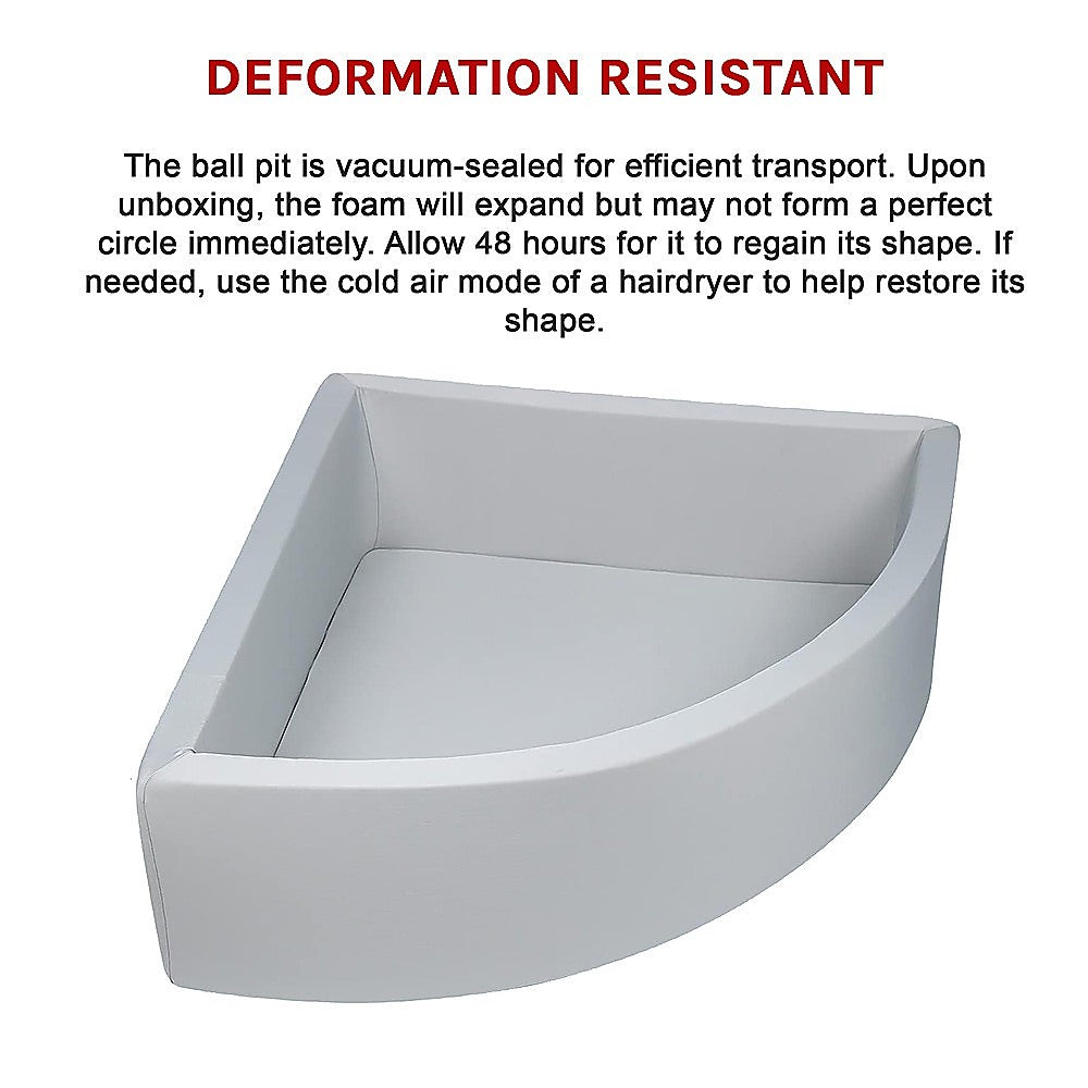The ball pit is vacuum-sealed for efficient transport. Upon unboxing, the foam will expand but may not form a perfect circle immediately. Allow 48 hours for it to regain its shape. If needed, use the cold air mode of a hairdryer to help restore its shape.