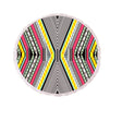 It's time to throw away your old beach towel and get a new stylish one. This 100% Cotton Round Beach Towel 150 + 5 cm Diameter is a fun and festive summer beach towel which features an intricate geometric design with fringe printed in striking colour tones that will make you stand out on the beach. Designed in Australia. The brand is xueller. It is made from quality and absorbent 100% Cotton fabric in approx. 500gsm.