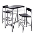 This sleek, modern breakfast bar set combines style and functionality. The clean lines and compact design make it ideal for apartments, or other placed like cafes, pubs or sunrooms. The stools can be tucked under the table when not in use to save more space. This breakfast bar set is made of high-quality MDF in black, which is easy to clean, and will suit any decor. The quality steel frames make the set very stable and durable. Assembly is quite easy. Delivery includes 1 table and 2 stools.