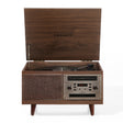 The Crosley Serenade 8-in-1 Record Player brings together all your favourite ways to listen to music in one sleek, retro-inspired package. Play vinyl records, cassettes, CDs, and AM/FM radio, or stream your digital playlists via Bluetooth. Designed with removable tapered legs and elegant gold accents, this entertainment centre adds a touch of mid-century modern charm to any space.