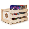 Fire-branded with the iconic Crosley logo, this wood crate in natural wood finish gives plenty of room to fill it with precious LPs.