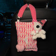 Cute Pink Bear Car Tissue Holder - Woven Design