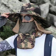 Dark Green Camouflage Outdoor Sun Protection Hat with Detachable Face and Neck Flap - UPF 50+