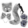 Dark grey Halloween Furry Fox Costume Set - Plush Mask, Ears Headband, Tail, and Paws for Cosplay