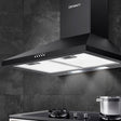 one bright 1.5W LED lamp to facilitate your illuminated cooking. The range hood is wall mounted and the chimney can be adjusted to fit the installation space.