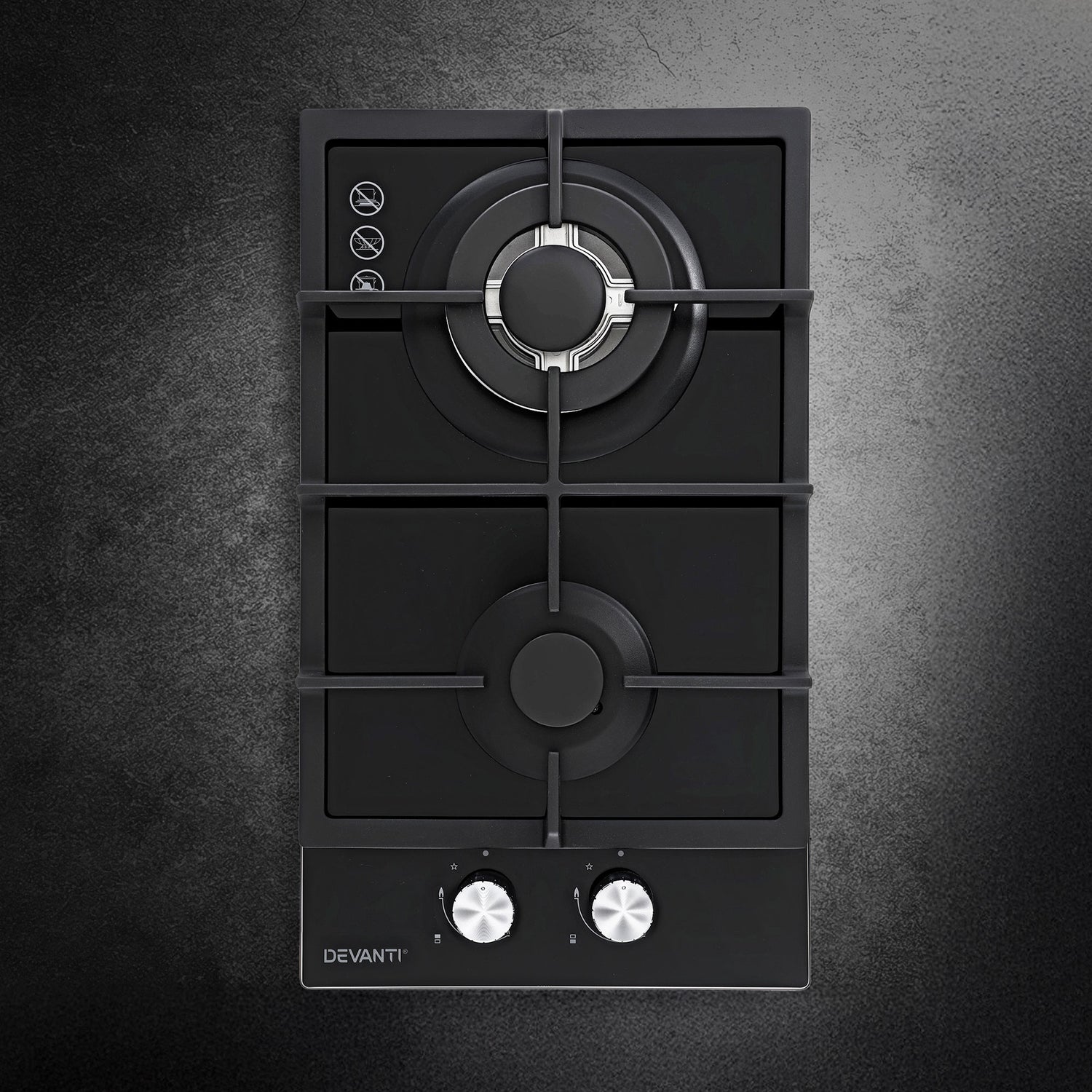 The Devanti 30cm 2-Burner Gas Cooktop is the ideal space-saving solution for modern kitchens, granny flats, and caravans. This built-in stove features a high-output 3.3kW Wok Burner and a 1kW auxiliary burner, providing professional heat control for everything from stir-frying to simmering.