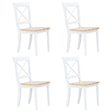 This wooden dining chair set consists of 4 pieces, with a simple yet elegant design, will make a great addition to your dining room or kitchen. The chairs are made of solid rubber wood, which makes them very stable and durable. Thanks to their polished, painted and lacquered finish, the chairs are easy to clean with a damp cloth. They've been ergonomically designed for added comfort. Delivery includes 4 dining chairs.