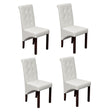 This set of 4 comfortable and large dining chair have an antique design and they have ergonomically shaped seats and backrests. The legs are made of solid wood in a varnished dark brown colour and the corners are rounded for safety. The chairs can easily be maintained and cleaned. The seats and backrest of these dining chairs are padded with durable synthetic leather.