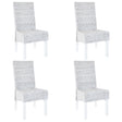 This Kubu rattan dining chair set with simple design and perfectly coordinated colour makes your dining room shining in new splendour. The mango wood frames and the genuine weave make the chairs not only structurally solid but also aesthetically pleasing. The rattan covered seats are very comfortable and easy to clean. If you are looking for something to complement your kitchen or dining room decor, this attractive handwoven rattan chair set will be your top choice. Delivery includes 4 dining chairs.