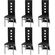The stunning chairs are contemporary yet timeless, adding a touch of style to your interior. Thanks to the ergonomic design, they are highly comfortable with high backrest and their solid steel frames make them very stable and durable. The seating is made of durable synthetic leather which can easily be cleaned. Assembly is very easy. Delivery includes 6 dining chairs.