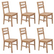 This elegant wooden dining chair set is sure to be an eye-catcher in your kitchen or dining room. The chairs are made of solid acacia wood which makes them sturdy and stable. The dining chairs are also easy to clean thanks to their brushed surface. Delivery includes 6 dining chairs. The dining chairs are easy to assemble.