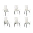 These 6 modern dining chairs have a high backrest to increase comfort. These comfortable dining chairs have a high quality and robust construction. The feet are made of stable steel and the seating is made of durable synthetic leather which can easily be cleaned.