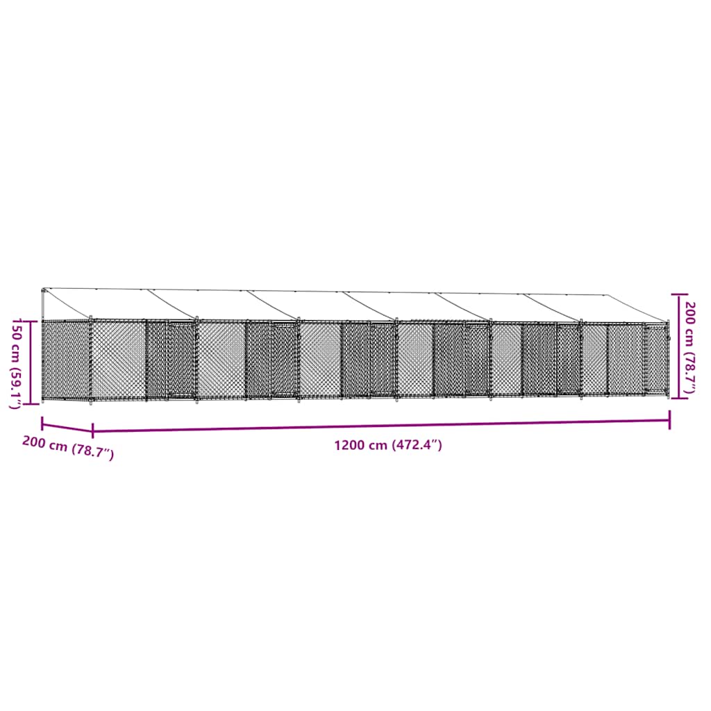 Keep your furry friends in a safe and comfortable space with this dog cage! Versatile use: The versatile dog kennel features multiple uses: playing, exercising, training, or simply keeping your dog safe. It will be the perfect play paradise for your animals!Durable construction: Thanks to the sturdy and heavy-duty galvanised steel construction, the dog pen is durable and built to last.Mesh design: The mesh design of the outdoor dog kennel helps prevent mischief and unexpected accidents while enabling ventilation.Practical roof: The roof of the metal dog crate is made of water-resistant fabric to provide your dog with shade and protection from light rain.Convenient access: The outside dog cage features lockable doors, making it easy to get in and out.Good to know:To prevent damage from heavy snow buildup, we recommend clearing the roof regularly during winter.