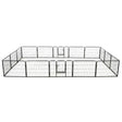 Our versatile playpen is ideal for your dogs to play, exercise, train or simply keeping them safe. It will be the perfect play paradise for your furry friends! This dog kennel can be easily set up or taken down. It consists of 16 heavy-duty panels and each panel can be easily attached to the next, which allows you to configure the playpen in different shapes. The dog enclosure features two hinged doors with security latches for easy access. This durable and weather-resistant dog playpen is made of rustproof powder-coated steel, making it suitable for outdoor and indoor use. The included ground stakes help secure the playpen outdoors for added stability and security.