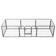 Our versatile playpen is ideal for your dogs to play, exercise, train or simply keeping them safe. It will be the perfect play paradise for your furry friends! This dog kennel can be easily set up or taken down. It consists of 8 heavy-duty panels and each panel can be easily attached to the next, which allows you to configure the playpen in different shapes. The dog enclosure features a hinged door with a security latch for easy access. This durable and weather-resistant dog playpen is made of rustproof powder-coated steel, making it suitable for outdoor and indoor use. The included ground stakes help secure the playpen outdoors for added stability and security.