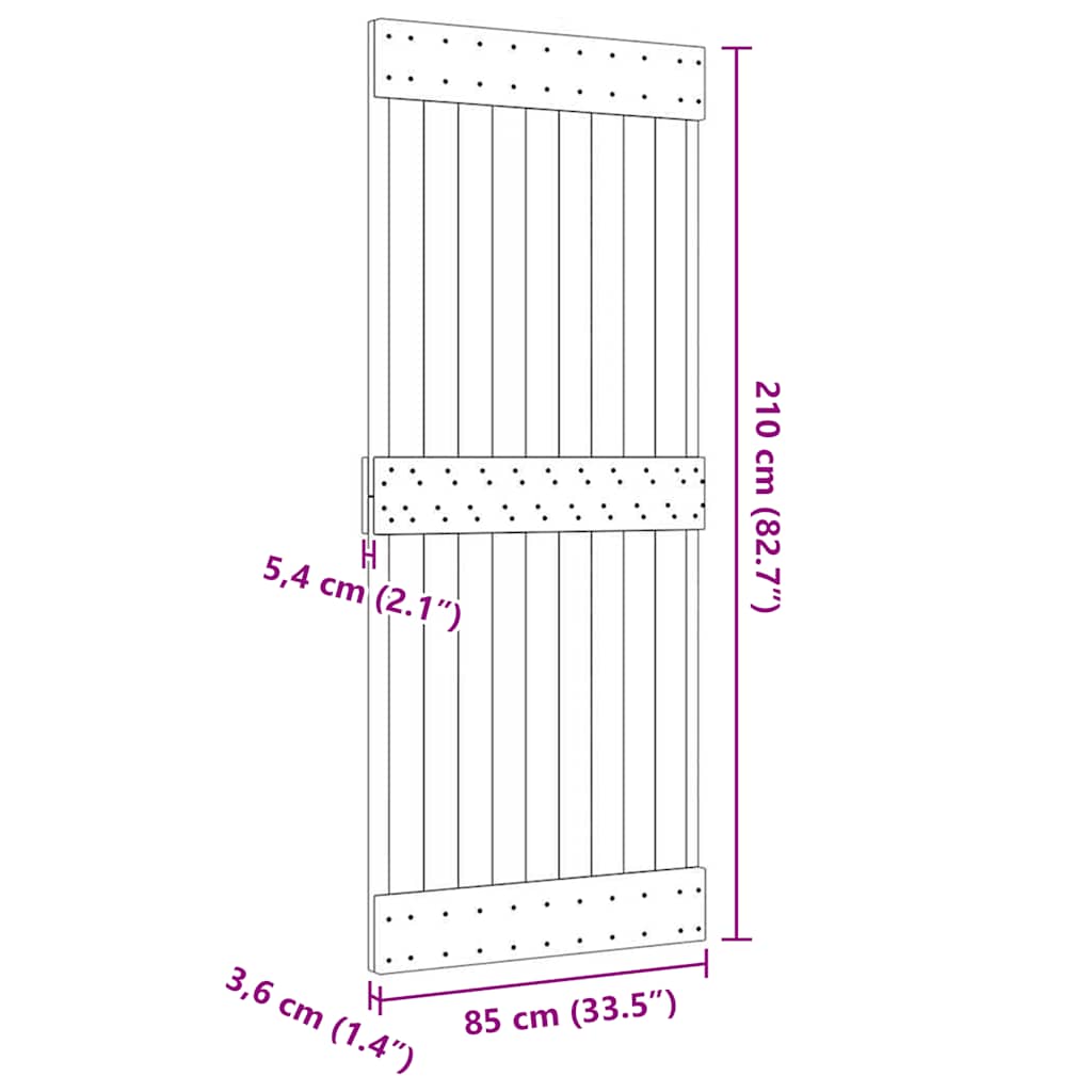 This solid pine wood door is designed to enrich the entrance of your home and make your home more secure. Solid pine wood: The interior door is made of solid pine wood. Solid pine wood is a beautiful natural material. Pine wood has a straight grain, and the knots give the material its signature, rustic look.Space-saving design: The sliding door saves space and looks more spacious. It is the first choice for a simple and atmospheric modern home design. Wide applications: The sliding barn door can be installed on both wooden walls and concrete walls. It's great for use in the bedroom, kitchen, barn, garage, etc. Good to know:To complement your NARVIK door with a stunning sliding door rail, take a look at our SKIEN range. Make sure that the sliding door rail size matches your door size before purchasing.