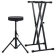 This adjustable keyboard stand and stool set is ideal companion for your keyboard performance and practice. The keyboard stand is made of rugged steel, making it very durable and stable. And the padded round stool offers you ultimate comfort in your sitting time. With several adjustable working heights, the stand and the stool both could be easily set at the desired height for players of different stature. Thanks to the foldable function, the stand and stool are designed for easy portability and better storage while travelling on the road. Delivery includes one stand and one stool.