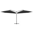 This elegant double parasol is perfect to create some shade and protect you from the sun's harmful UV rays. The distinctive double umbrella design will make it the eye-catcher in your backyard! Made of UV protective and anti-fade polyester, the parasol cover provides you with optimum protection against the sun and is easy to clean. It comes with a sturdy cross base to add stability. The strong powder-coated pole, along with the solid ribs, makes the parasol very stable and durable. Our garden umbrella can be easily opened and closed thanks to the crank mechanism. The item is easy to assemble. NOTE: This product should NEVER be used under bad weather, such as strong wind, heavy rain, snow, storm, etc.