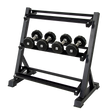The rack is built to handle up to 300kg and has angled shelves for easy loading of the weights and seamless de-racking. It comes with three tiers so you have enough storage and not have your dumbbelss left lying around.