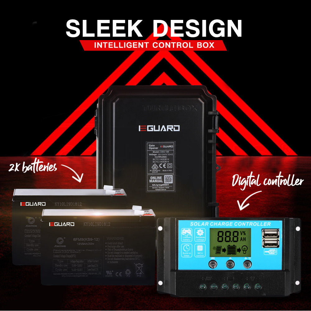 - 1 x E-GUARD Solar Double Swing Gate Opener