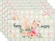 Easter Cotton-Linen Placemats - Rabbit Flower Set of 4 Anti-Stain Table Mats