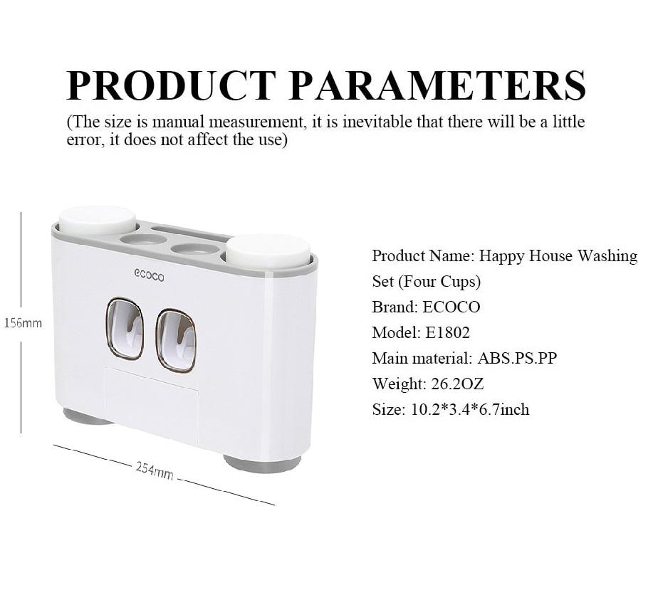 Multi-functional combination: a set of products containing 2 automatic toothpaste dispenser for children and adult, 4 dustproof environment friendly cup for 4 member of family, dust toothbrush holder, multi-functional incorporating shelves, a set of products to solve the problem of incorporating toiletries of a family.