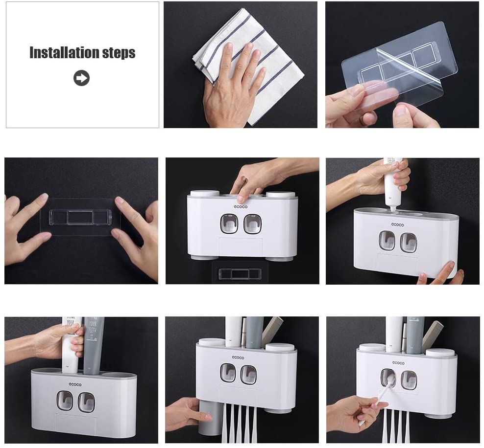 Ecoco Wall-Mounted Toothbrush Holder with 2 Toothpaste Dispensers 4 Cups and 5 Toothbrush Slots Toiletries Bathroom Storage Rack (Grey) is backordered and will ship as soon as it is back in stock.