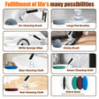 - 8 Interchangeable Brush Heads: Includes various brush types like Arc Cleaning Brush, Large Flat Brush, Pointy Brush, Sponge Wipe, and different Cleaning Cloths (attachable via Velcro base) to suit different surfaces and cleaning needs.
