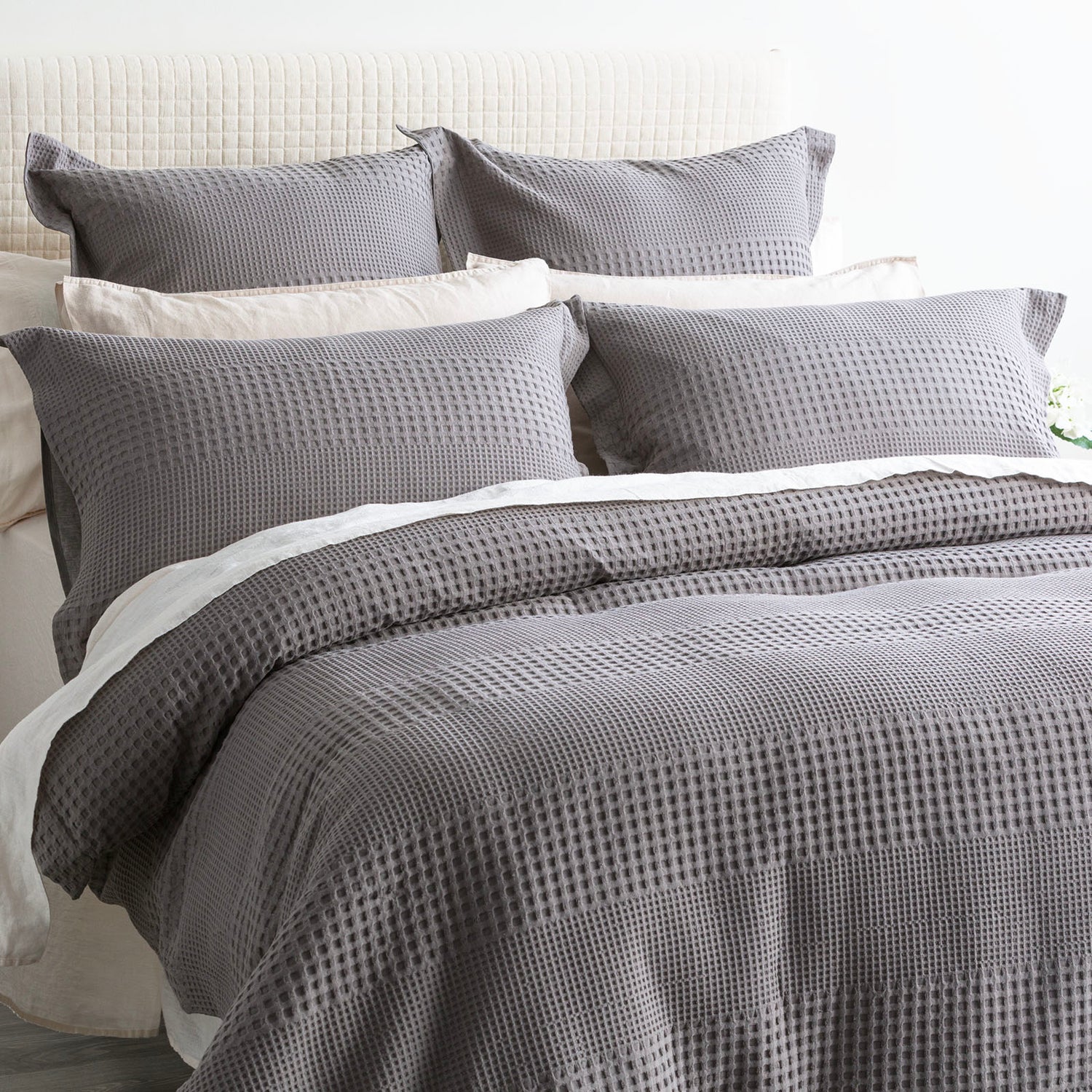Our most popular simple and elegant, a classic waffle weave never goes out of fashion. Elevate this textural jacquard, modern look by styling with the range of colors from the premium elegance waffle collection. Finished with a crisp 250 thread count cotton percale reverse and a smart, tailored edges on both the quilt covers and pillowcases, this timeless premium collection is the perfect choice for any home. Fully machine washable and all year-round product.