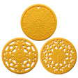 Elegant Floral Silicone Trivet Mat Set (3-Pack, Yellow) - Heat Resistant, Non-Slip Kitchen Hot Pads & Pot Holders