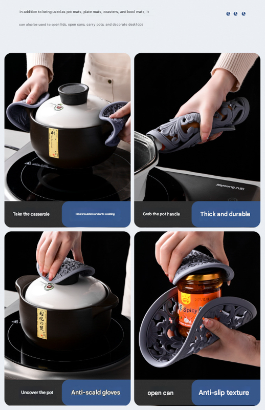 - Superior Non-Slip Grip: The flexible silicone material and intricate hollow design provide an excellent non-slip surface, keeping your cookware and dishes securely in place and preventing accidental spills or slides.