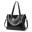 Elegant PU Leather Tote Bag with Detachable Strap - Black