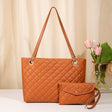 Elegant Quilted Tote Bag with Matching Clutch - A stylish set featuring a soft brown quilted tote bag paired with a matching clutch. Perfect for the modern woman, this bag set combines practicality with elegance, ideal for everyday use or special occasions.