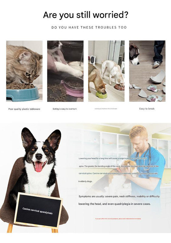 - Elevated Design for Comfort: Raises the food to a more comfortable height, protecting the pet's cervical spine and reducing strain during eating.