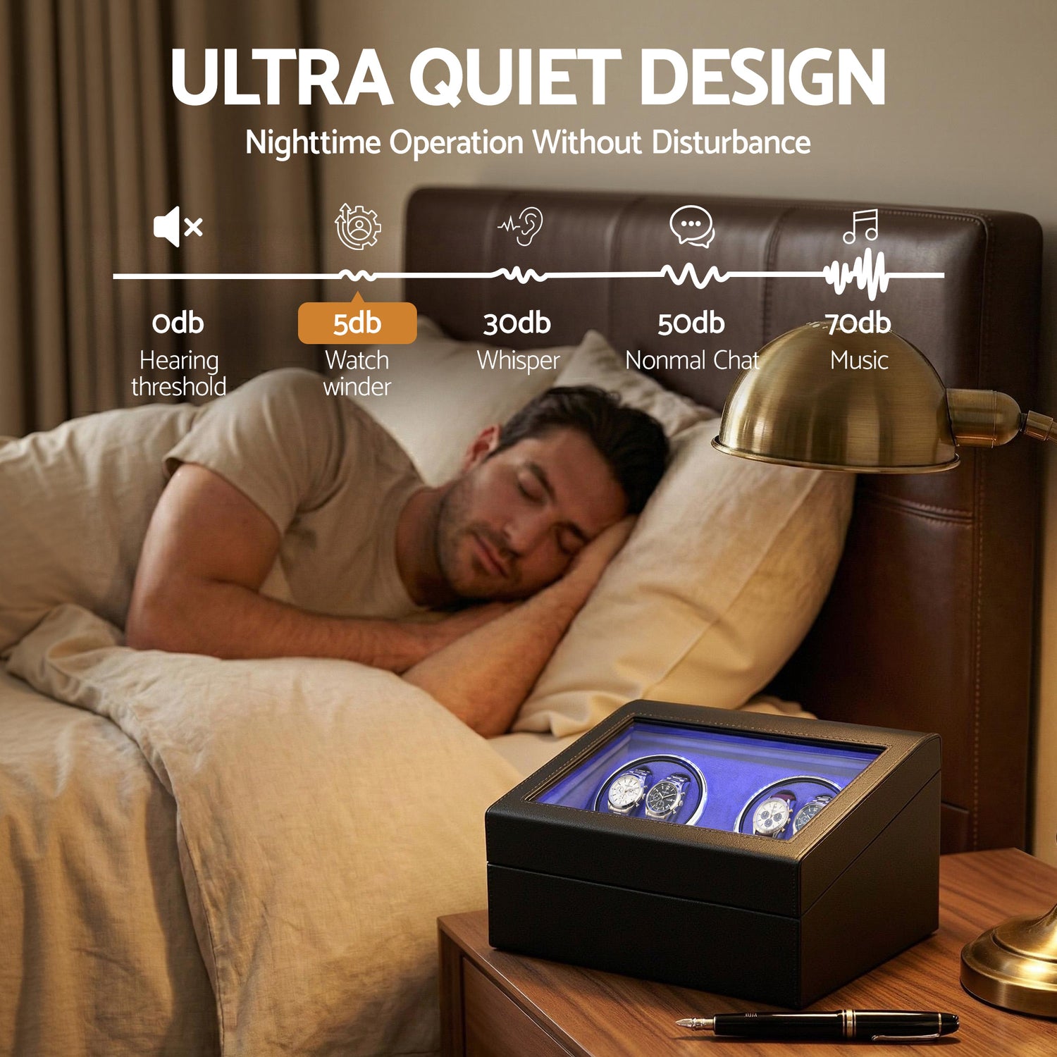 Designed for automatic watches, the Embellir watch winder features dual independent rotation, multiple winding modes and ultra quiet operation. With LED lighting, soft interior lining and open lid stop design, it offers secure and elegant watch storage for everyday use.