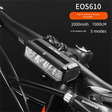 EOS610 1000 Lumen Anti-Glare Bike Light with Single Bracket Mount - USB Rechargeable LED Headlight 2000mAh - Waterproof Aluminium Horizontal Front Lamp for MTB & Road