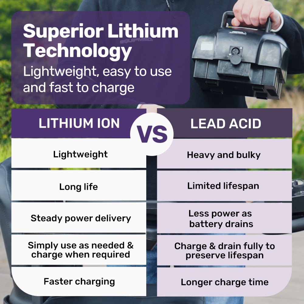 Unlike most mobility scooters that rely on outdated lead-acid batteries, the FreeLite+ features a high-capacity lithium battery. This means longer lifespan, faster charging, and zero maintenance. The lightweight, removable design allows you to charge it anywhere and also makes the scooter easier to lift into a vehicle. Plus, lithium batteries maintain consistent power output even as they deplete, so you can enjoy a smooth ride for longer.