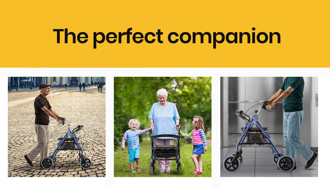 With dual-action loop handbrakes, adjustable handle height, contoured grips, padded seating and a comfortable padded backrest, your Equipmed rollator walker offers great ergonomics and comfort.