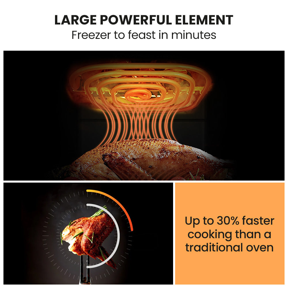 - Achieves a crispy texture with up to 80% less fat for healthier cooking