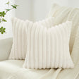 Faux Fur Cushion Covers - Chunky Embossed Flannel with Hidden Zipper - Snow, 45cm x 45cm (Pack of 2)