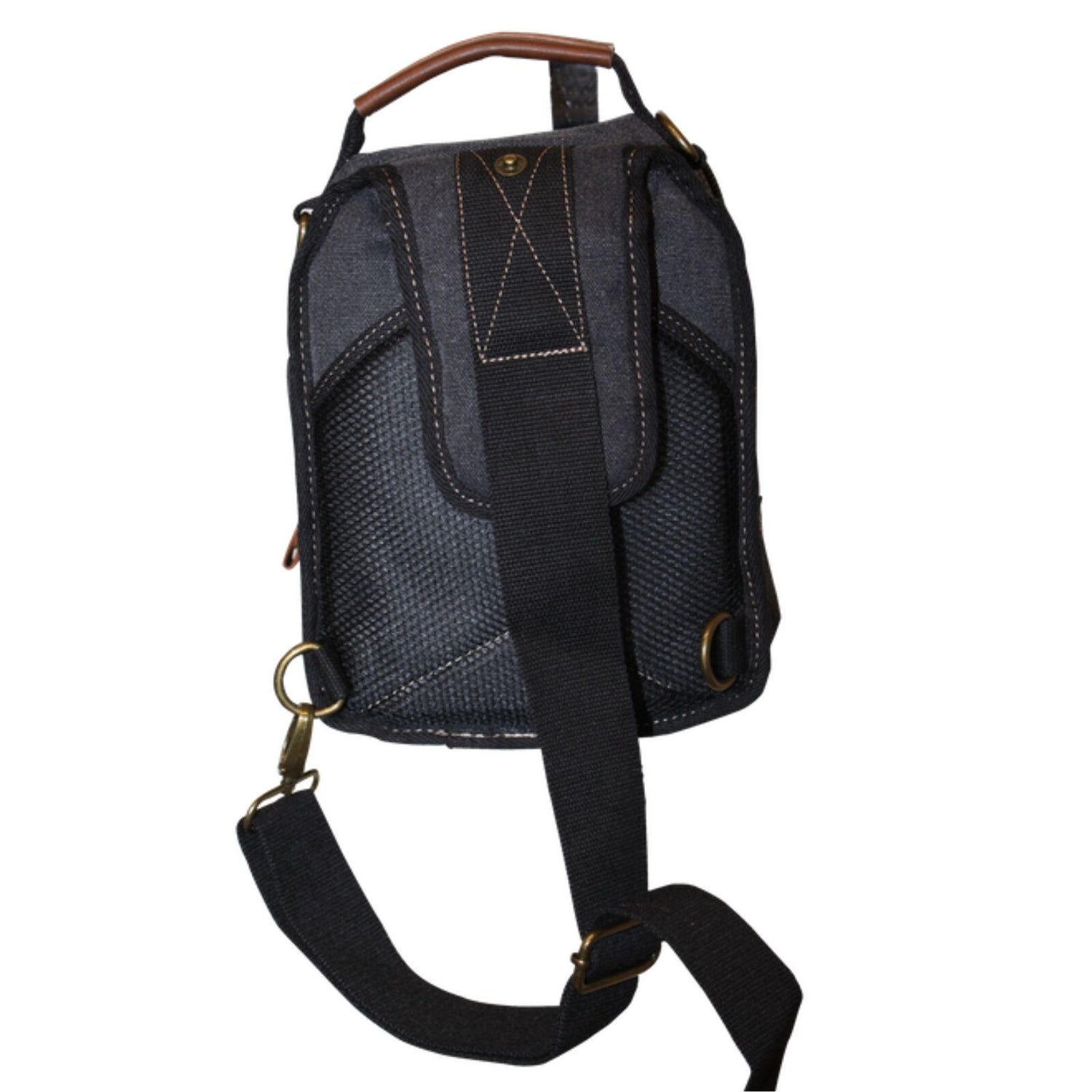 FIB Canvas Sling Bag Shoulder Strap Messenger Travel Pack w Tablet Pocket - Black