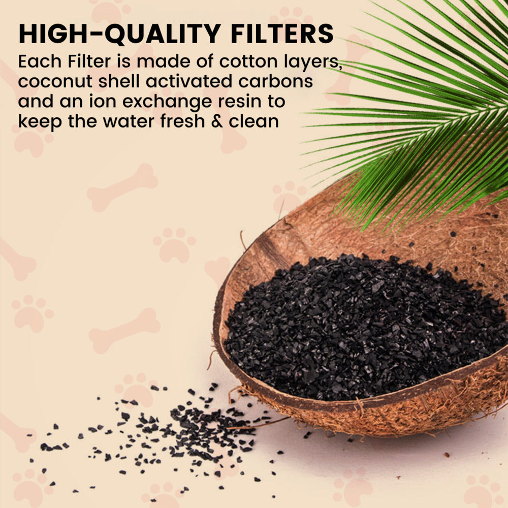 Each Filter is made of cotton layers, coconut shell activated carbons and an ion exchange resin to keep the water fresh and clean. - Disclaimer: Adapter are not included, Power input recommended 5V 1A