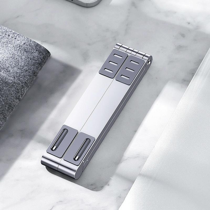 Foldable Aluminum 3-in-1 Phone Tablet Stand - Portable Storage - Silver