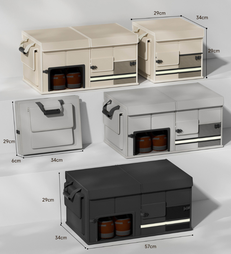 - Tired of a messy car trunk? Our Foldable Car Trunk Organiser is here to save the day! Whether youre hitting the road for a weekend getaway or just need to tidy up your daily commute, this storage box is a game-changer. With two sizes 30L for smaller loads and 60L for bulkier items it fits every need.