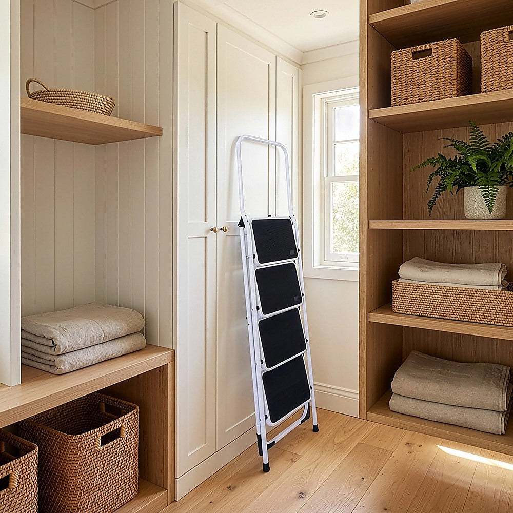 This versatile ladder meets the needs of a wide range of users. Families can benefit from its reliable safety when changing light bulbs, cleaning, or organizing cupboards. Minimalists appreciate its slim, foldable profile that fits seamlessly into small spaces. Renters value its portability and no-installation design, easily stowing it away between uses. The Foldable Non Slip 4 Step Steel Ladder is a practical addition for anyone seeking the Best 4 Step Steel Ladder for Sale in terms of functionality and convenience.